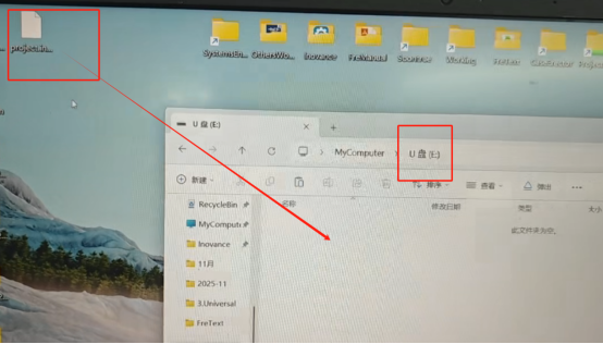 3. Open the USB flash drive and copy the “project251213” file to the USB drive.